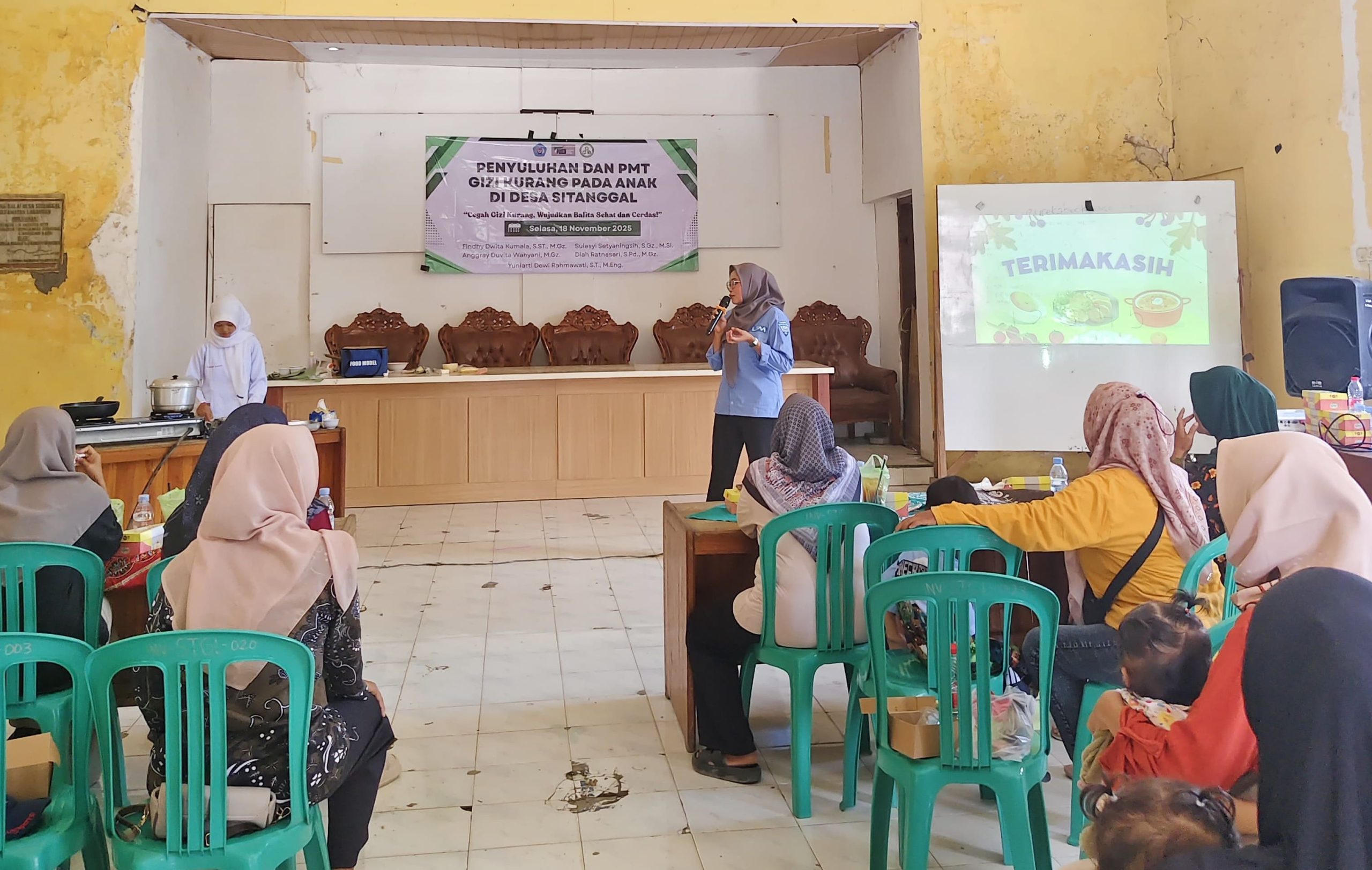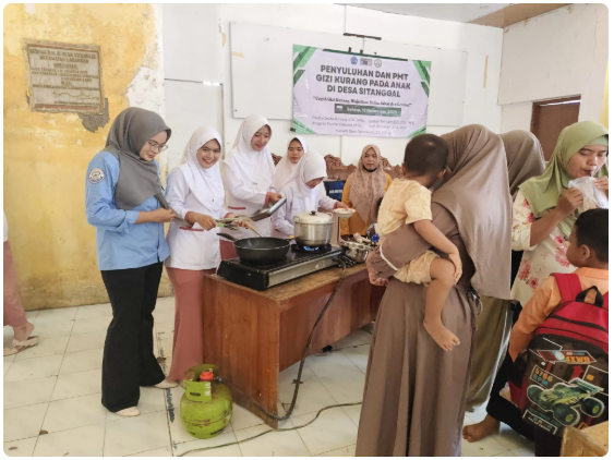 Permasalahan gizi kurang pada anak usia 6–59 bulan di Desa Sitanggal, Brebes, mendapatkan perhatian serius melalui kegiatan penyuluhan dan pemberian makanan tambahan (PMT) yang digelar di aula desa. Kegiatan ini merupakan bagian dari upaya intervensi gizi berbasis pangan lokal, yang diharapkan mampu meningkatkan status gizi balita di wilayah tersebut.