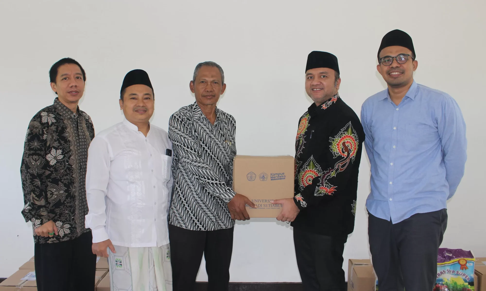 Sebagai bentuk nyata kepedulian sosial, kegiatan dilanjutkan dengan penyerahan santunan kepada anak-anak yatim, yang secara simbolis diserahkan langsung oleh jajaran rektorat bersama keluarga besar Yayasan Muhadi Setiabudi. Momen tersebut berlangsung penuh haru, ketika senyum kebahagiaan terpancar dari wajah para penerima santunan.